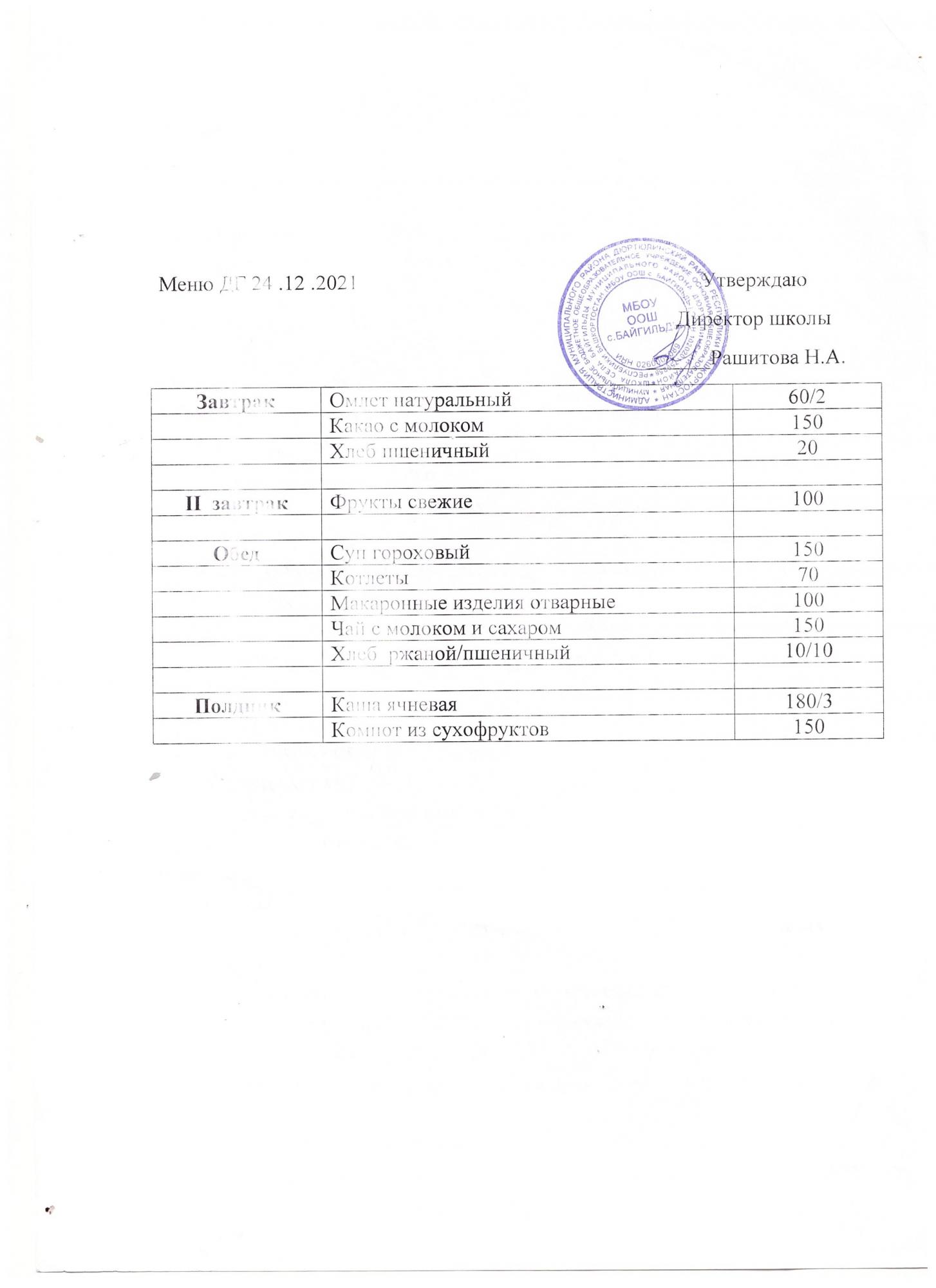 Двухнедельное меню